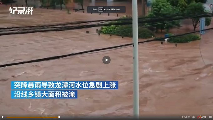 中共当局正在大庆其建党一百周年之际,“七一”之前,中国各地洪水滔天。6月28日,中国从南到北许多地区遭遇洪水灾害,北至黑龙江,南至福建,暴雨引发的洪水不仅使许多城镇发生严重内涝,更有很多房屋被洪水冲垮。官媒称,目前中国大陆共有23条河流发生超警以上洪水。
