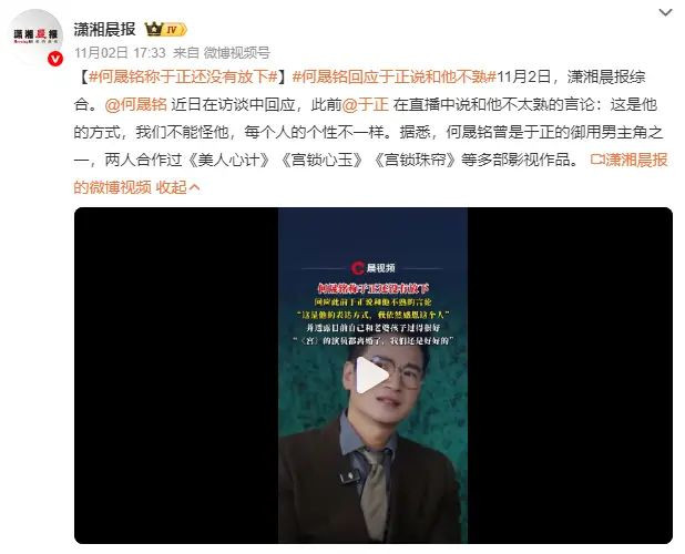 11月2日,潇湘晨报综合。何晟铭近日在访谈中回应,此前于正在直播中说和他不太熟的言论:“这是他的方式,我们不能怪他,每个人的个性不一样。”