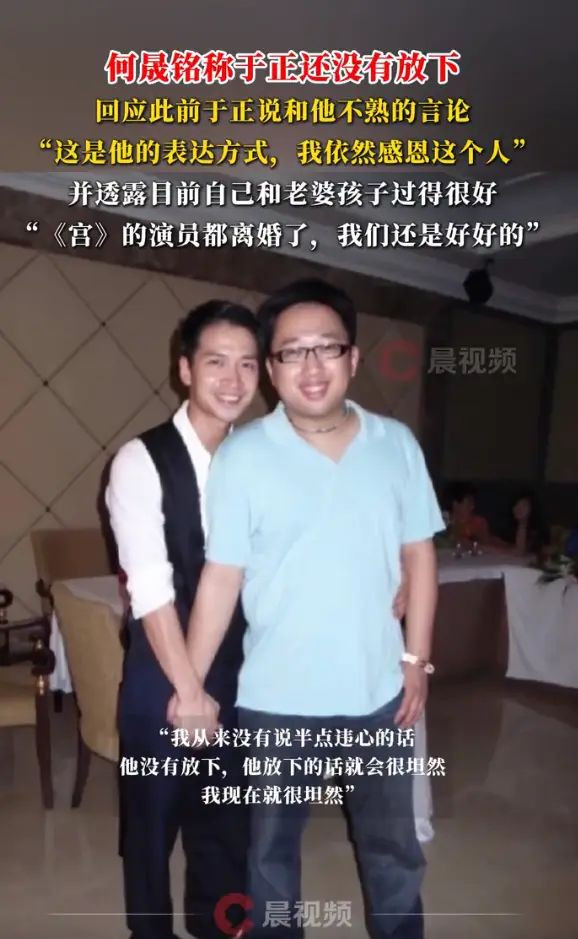 何晟铭说:“其实我说所有于老师的东西,它都是真的,我从来没有说半点违心的话,只是我跟他的表达方式不一样,他可能就是,就是他没放下。我说山水一程,永不相逢,我告诫是我自己,把别人还给别人,把自己还给自己,所以我还想跟你说,我说的每一句话对于老师的评价都是来自真诚的、真心的。因为只有真的东西它是有力量的,我说的每一句,到现在为止,我依然非常感恩这个人。”